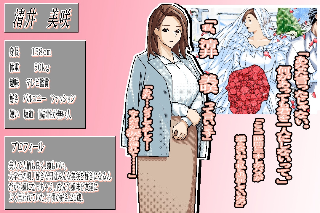 因为想找 “PC98 的色情游戏中被绿的类型来手淫!”,却发现几乎没有,所以为了自己手淫而制作了本作品。